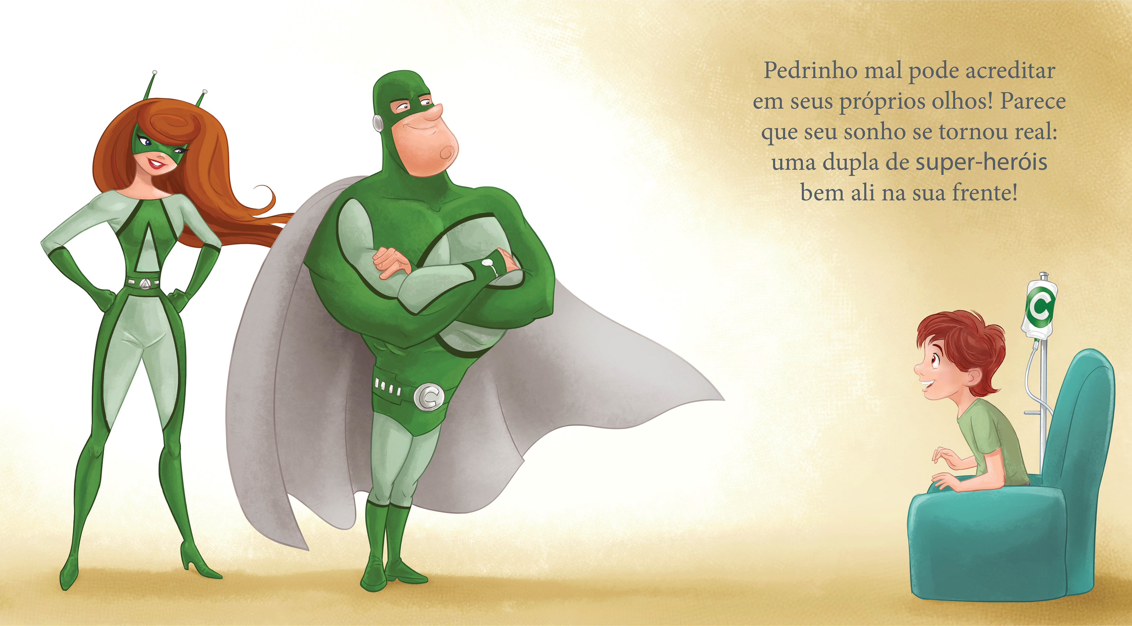 This is one of the projects that I hold closest to my heart was the creation of an illustrated book for the children’s ward of Hospital Angelina Caron, in Paraná, Brazil. The book was developed especially for young patients undergoing cancer treatment, with the goal of bringing hope, courage, and a sense of wonder during such a difficult journey. The story follows a young boy receiving treatment at the hospital, who is guided and supported by a duo of superheroes powered by a “super serum”. Through their adventures, the narrative highlights strength, resilience, and friendship, while giving children a chance to see themselves as heroes of their own story. This project was not only about illustration, but about creating an emotional bridge between imagination and healing, showing the power that storytelling and visual art can have in providing comfort and inspiration.